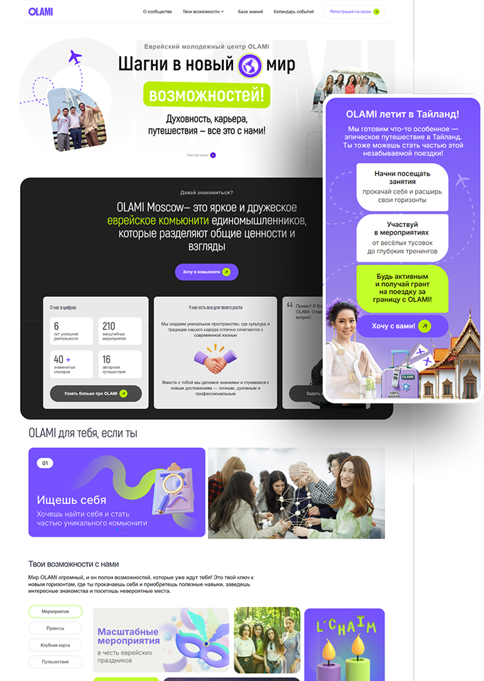 Olami Moscow is a vibrant Jewish community center offering educational and social events for young professionals and students. Their website plays a key role in helping the organization promote upcoming activities, share announcements, and manage event participation.
