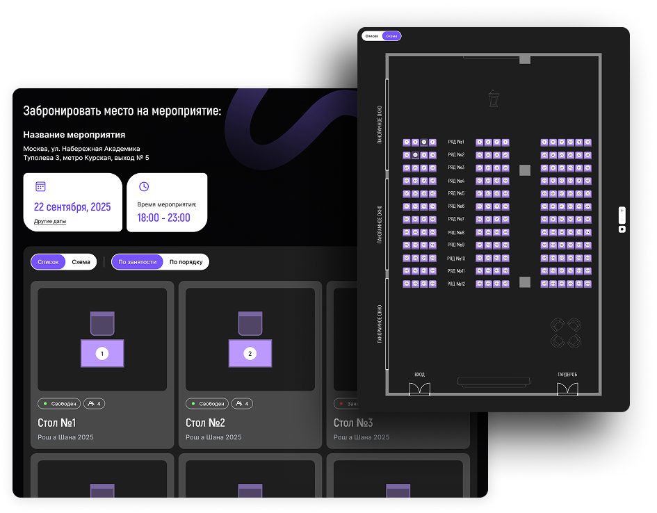 Each event can have a unique floor plan, easily editable by the admin through a user-friendly interface.